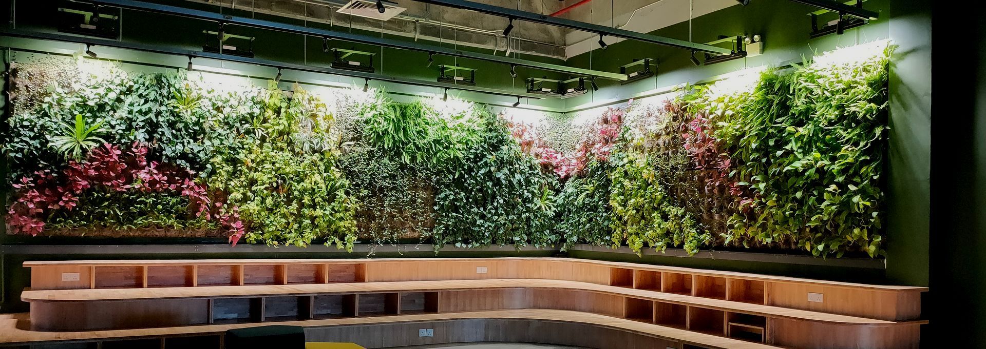 We offer 2 types of vertical greening solutions. The traditional potted modules, as well as GaiaWall, a thin, low-maintenance and soil-less green wall system.