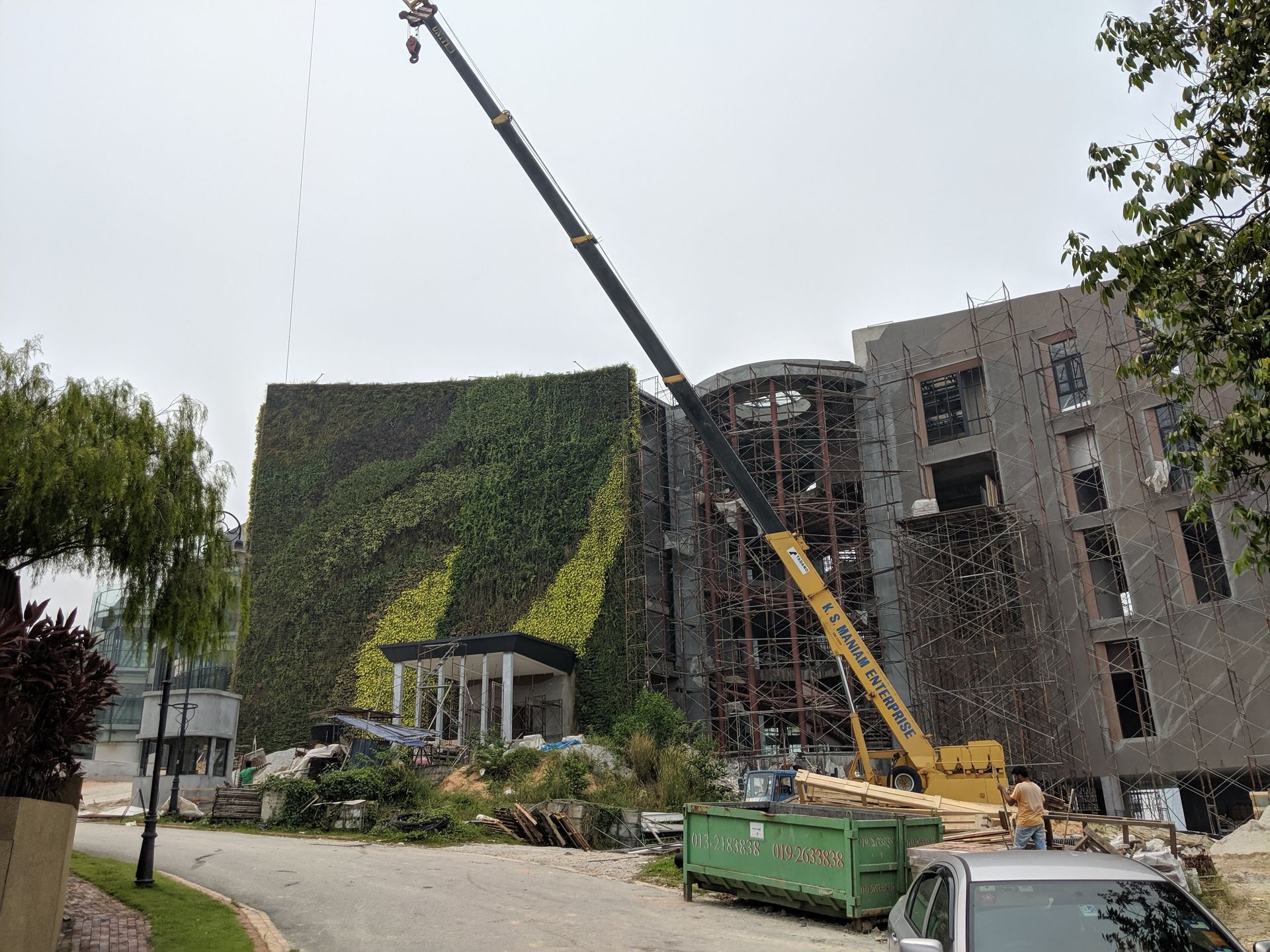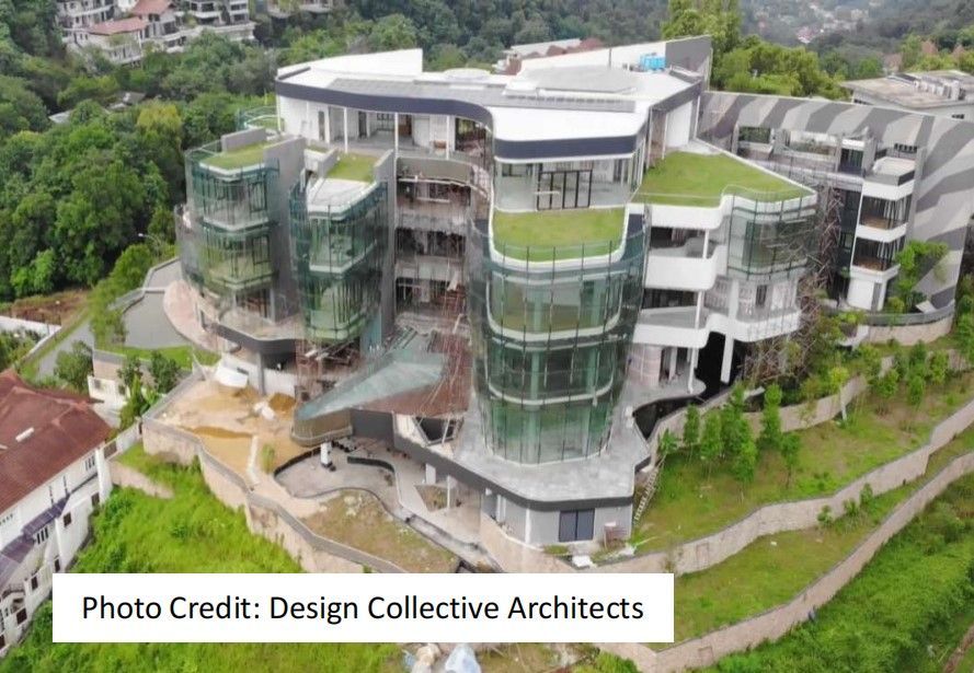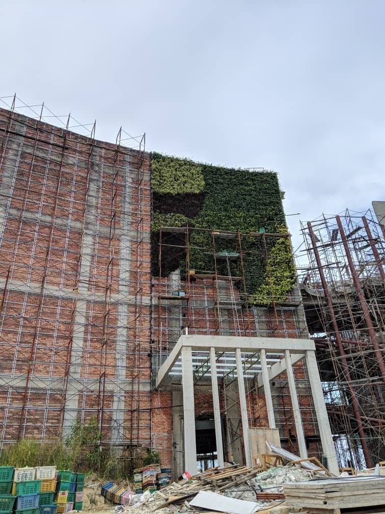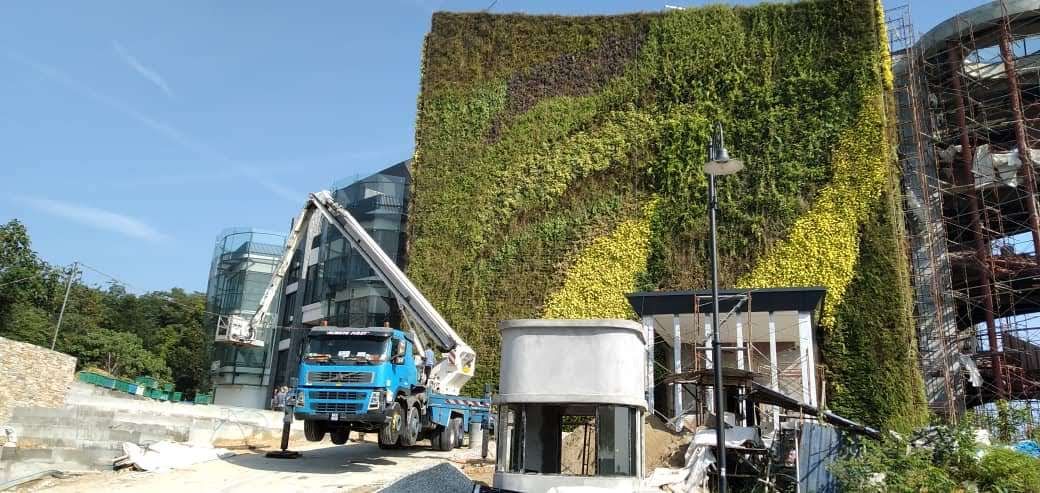 Located on a hill overlooking the Kuala Lumpur city skyline, this lush green element is part of an overall landscape design that blends in the building structure with its environment. We used the GWS Green Module System to allow for flexibility in giving the wall an elaborate design together with colour accents.