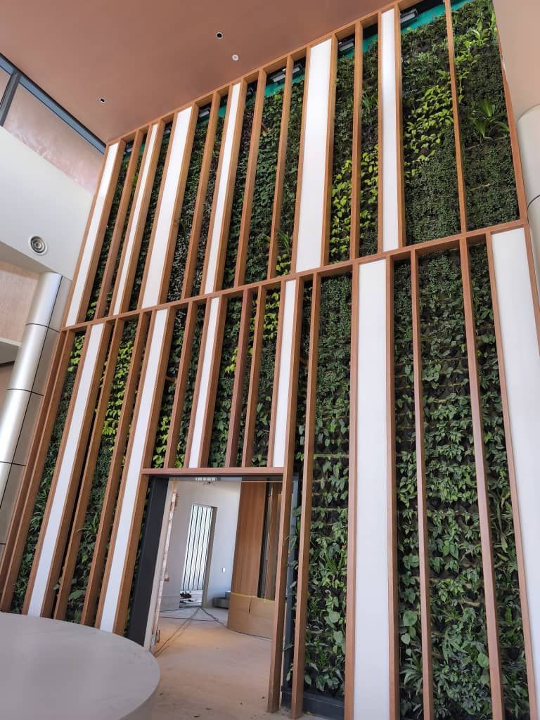 2025年の旧正月に予定されていた開業までの限られたリードタイムの中、私たちはプラウ・ピナン、ガーニー・ドライブ沿いにあるウェスティン・レジデンスの販売ギャラリー向けに、2.5階建ての屋内緑化壁を完成させるという依頼を受けました。Arkitek Permataの熱心なスタッフによって設計されたこの緑化壁と垂直の建築フィンは、メインの販売ギャラリーロビーのドラマチックな背景となり、垂直の緑の下部には中央のエントランスが設けられ、そこから各ショールームユニットへと続いています。Gaiawallシステムは、現場外でプレファブリケーションされ、モジュール形式で現場に搬入されたため、現場での作業を大幅に削減し、ウシオのグローライトを備えた69平方メートルの緑化壁を1週間以内に完成させることができました。
